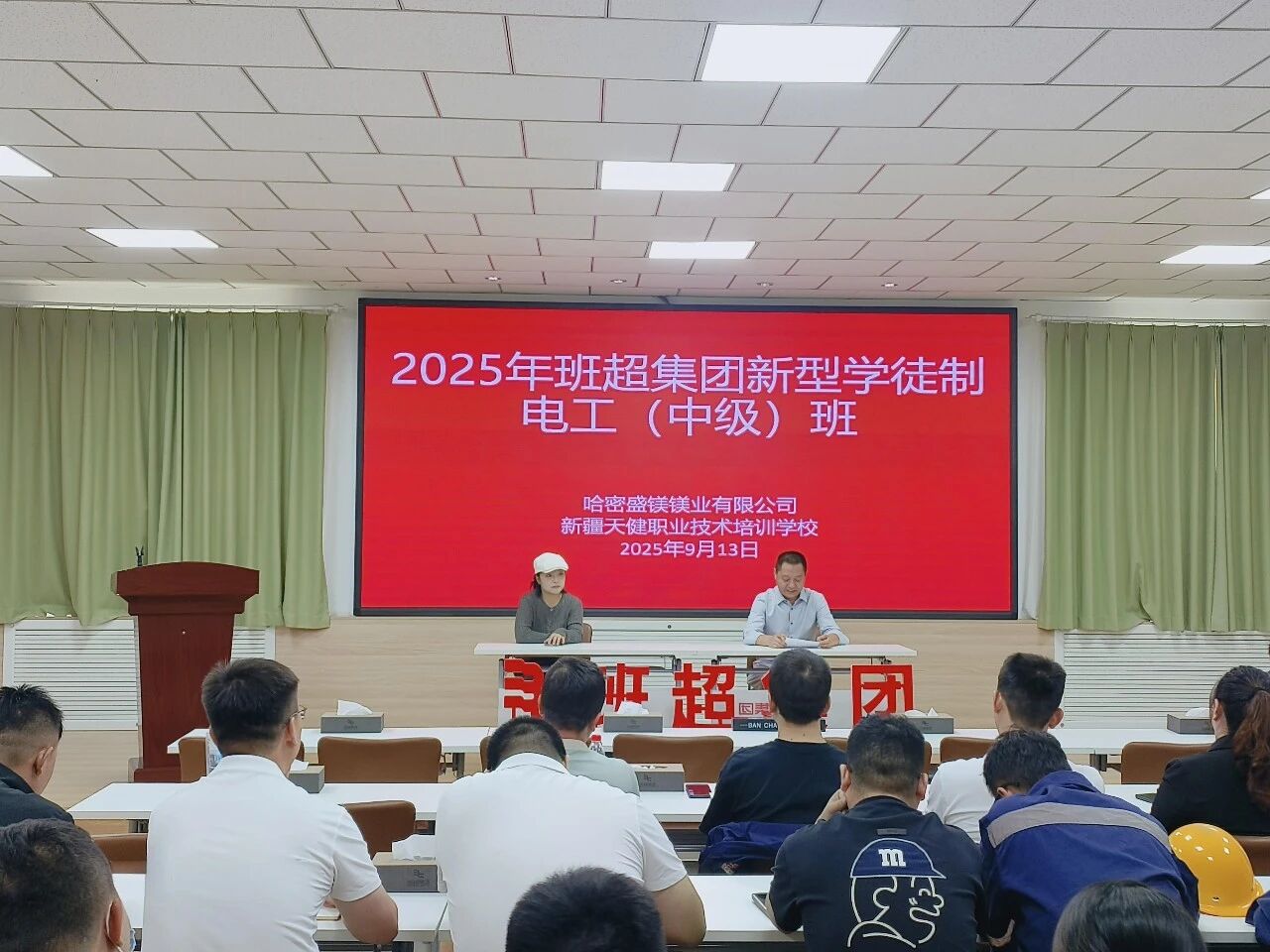 9月13日上午,班超集團(tuán)聯(lián)合新疆天健職業(yè)技術(shù)培訓(xùn)學(xué)校在盛鎂鎂業(yè)三樓會(huì)議室舉辦新型學(xué)徒制電工(中級(jí))班培訓(xùn)活動(dòng),旨在通過(guò)系統(tǒng)的知識(shí)講解,幫助員工夯實(shí)電工專業(yè)理論基礎(chǔ),筑牢職業(yè)技能發(fā)展根基,共計(jì)60余人參加此次培訓(xùn)。  企業(yè)新型學(xué)徒制培訓(xùn)是按照“政府引導(dǎo)、企業(yè)為主、院校參與”的原則,采取“企校雙制、工學(xué)一體”“雙師帶徒、交替培養(yǎng)”的一種新型學(xué)徒培養(yǎng)機(jī)制。企業(yè)新型學(xué)徒制培訓(xùn)對(duì)于班超集團(tuán)優(yōu)化高技能人才培養(yǎng)機(jī)制,加快建設(shè)知識(shí)型、技能型、創(chuàng)新型人才隊(duì)伍,加快企業(yè)青年技能人才的培養(yǎng)具有重要意義。培訓(xùn)內(nèi)容涵蓋中級(jí)電工必備的電氣控制基礎(chǔ)、電機(jī)與變壓器原理、電力系統(tǒng)基本知識(shí)等核心模塊,為員工打造系統(tǒng)的理論提升平臺(tái)。 下一步,班超集團(tuán)將繼續(xù)為廣大員工搭建學(xué)習(xí)提升平臺(tái),通過(guò)舉辦高質(zhì)量、多元化的職業(yè)培訓(xùn),提高員工技能水平和職業(yè)素養(yǎng),加快公司高技能人才梯隊(duì)建設(shè),助推企業(yè)高質(zhì)量發(fā)展。 On the morning of 13 September, Banchao Group, in partnership with Xinjiang Tianjian Vocational & Technical Training School, launched a new-style apprenticeship programme for intermediate electricians on the third-floor conference room of Shengmei Magnesium. The initiative delivers systematic lectures designed to consolidate employees’ theoretical grounding in electrical work and lay a solid foundation for vocational growth; more than 60 staff members attended. The enterprise-based apprenticeship model follows the principle of “government guidance, enterprise leadership, institutional participation” and adopts a dual-track, work-integrated format in which company mentors and college instructors coach apprentices in alternating phases. For Banchao Group, the scheme is a key lever for refining its high-skilled-talent pipeline, accelerating the build-up of a knowledgeable, skilled and innovative workforce, and fast-tracking the development of young technicians. The curriculum covers core modules required for the intermediate-electrician credential—fundamentals of electrical control, principles of motors and transformers, and essential power-system knowledge—providing employees with a comprehensive theoretical upgrade platform. Next, Banchao Group will continue to expand learning opportunities for its workforce through high-quality, diversified vocational training, raising skill levels and professional competence, speeding up the construction of a high-skilled-talent echelon, and propelling the company toward high-quality development.